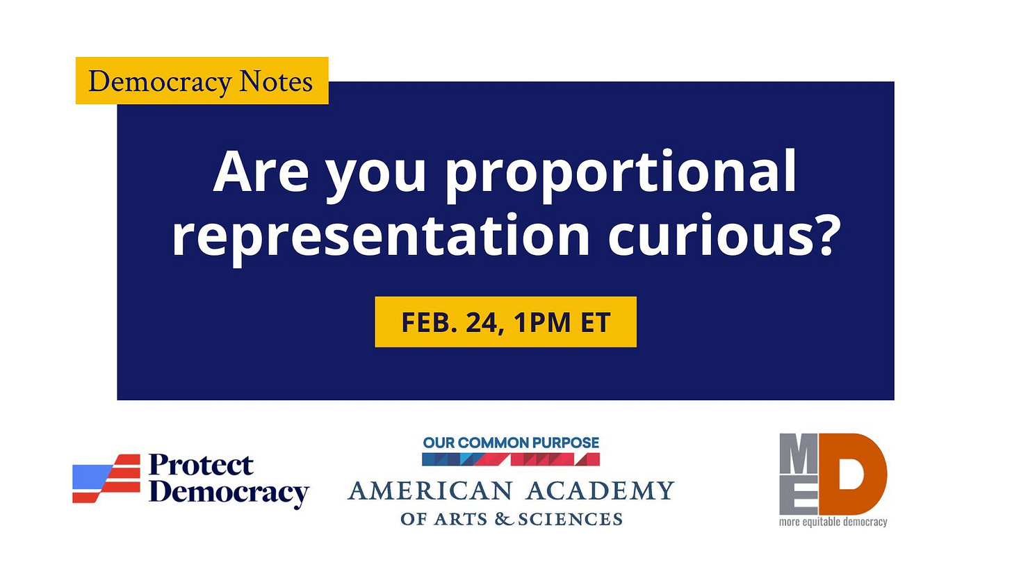 And…for the webinar lovers among us, join our event (with the American Academy of Arts & Sciences) on ~proportional representation~ on 2/24 at 1pm ET. You’ll hear from:
